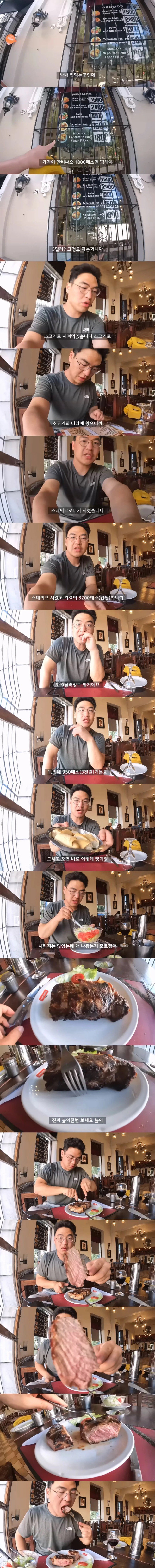 A: "스테이크 500페소에 먹어봐, 너무 싸다고."