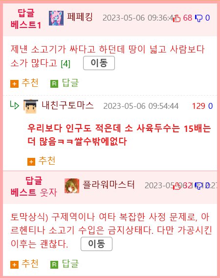 D: "무슨 이유에서인지 아르헨티나 소고기는 맛있는 것 같아."