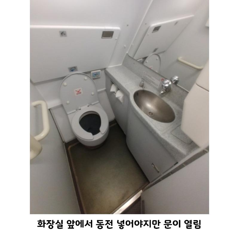 - 화장실에 갈 때는 승무원에게 꼭 말하고 가야 합니다. 그렇지 않으면 문이 열리지 않을 수 있습니다.