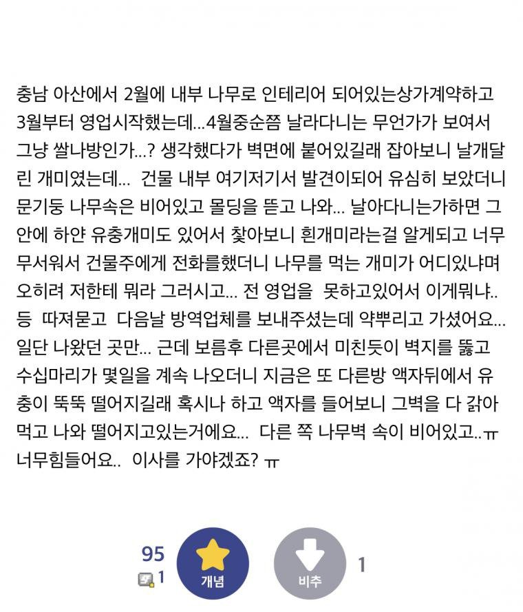 - 집을 잠들고 창문을 여니 수많은 개미들이 있었습니다. 진짜 개빡치네요. Oo (114.202)