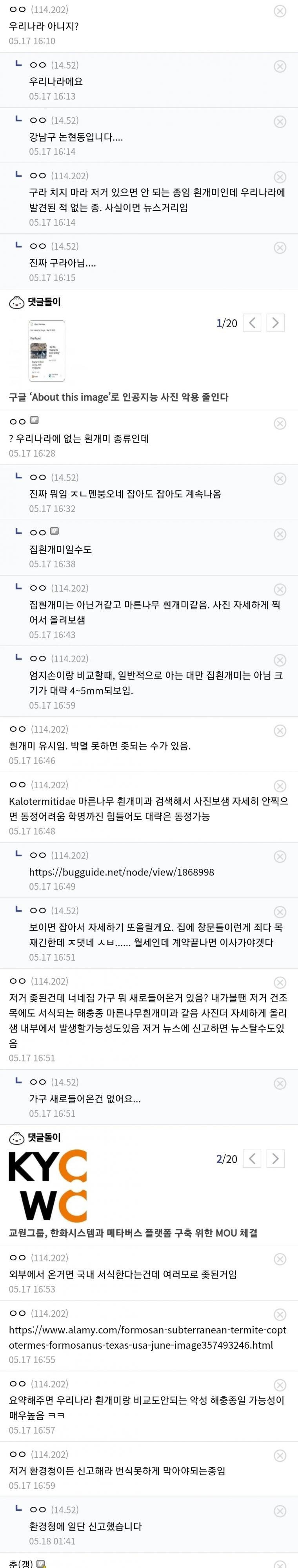 지금 여기저기서 흰개미 관련 상황들이 터지고 있네요