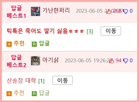 - 커뮤니티와 관련된 답글, 베스트 글, 커뮤니티 사이트, 트위터, 틱톡 등 소통을 위한 다양한 플랫폼들에 대한 언급도 있습니다.