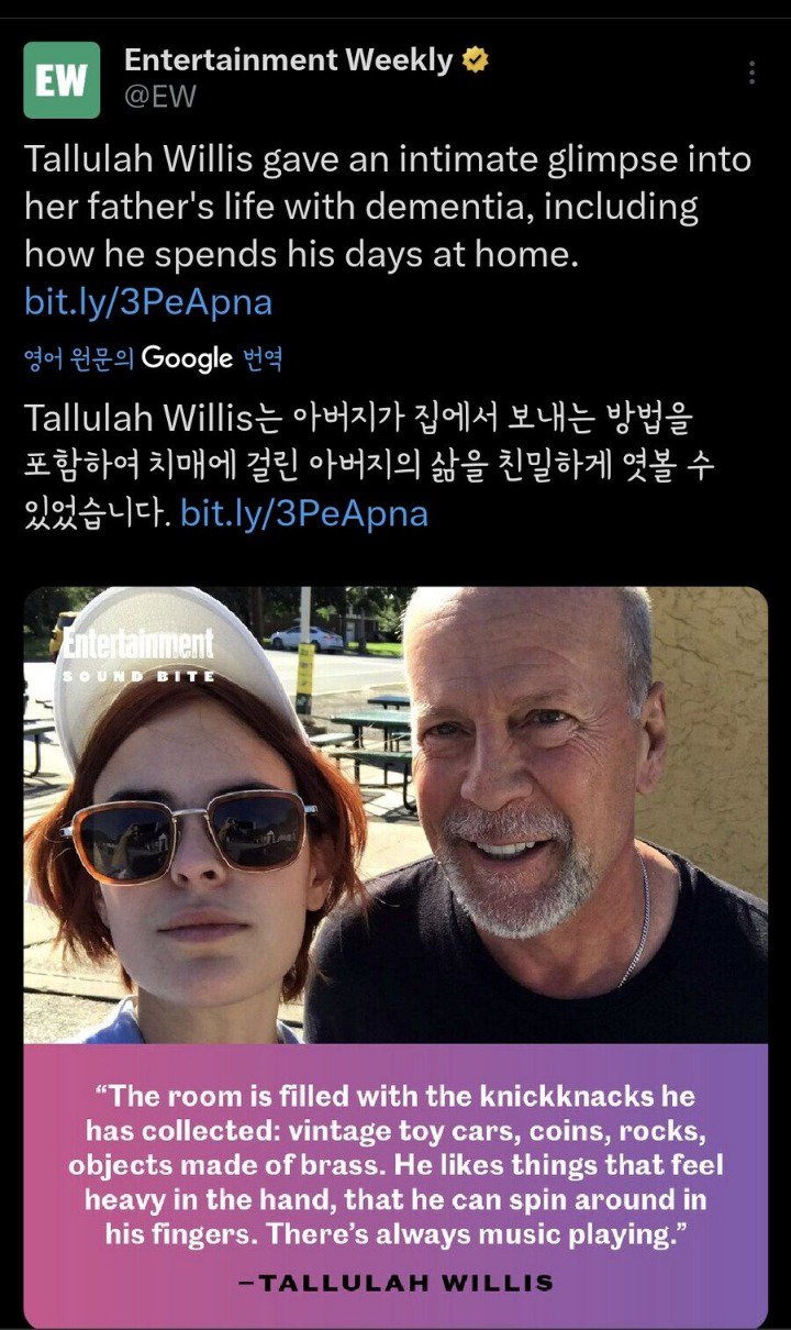 치매에 걸린 브루스 윌리스의 근황을 알린 딸.jpg