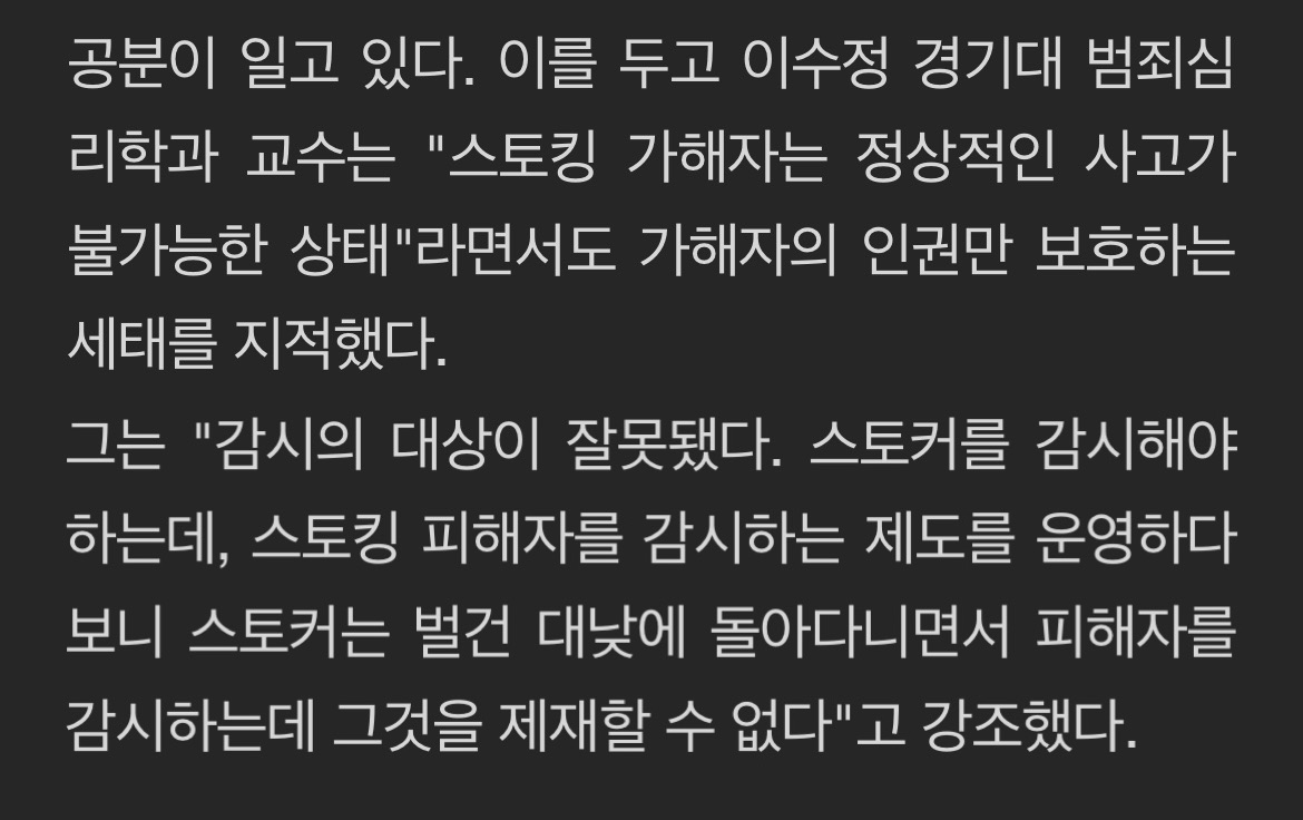 근데 이젠 피해자 의사와 무관하게 스토킹행위 가해자 처벌할 수 있게돼서 이 부분에서 피해자 부담이 사라짐