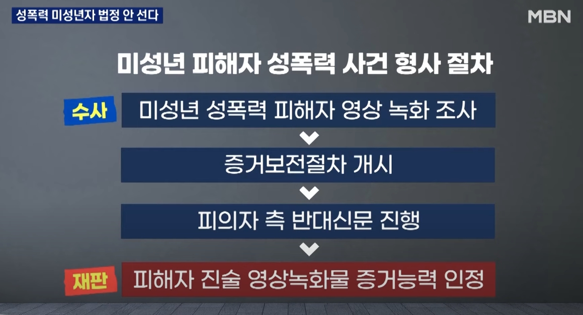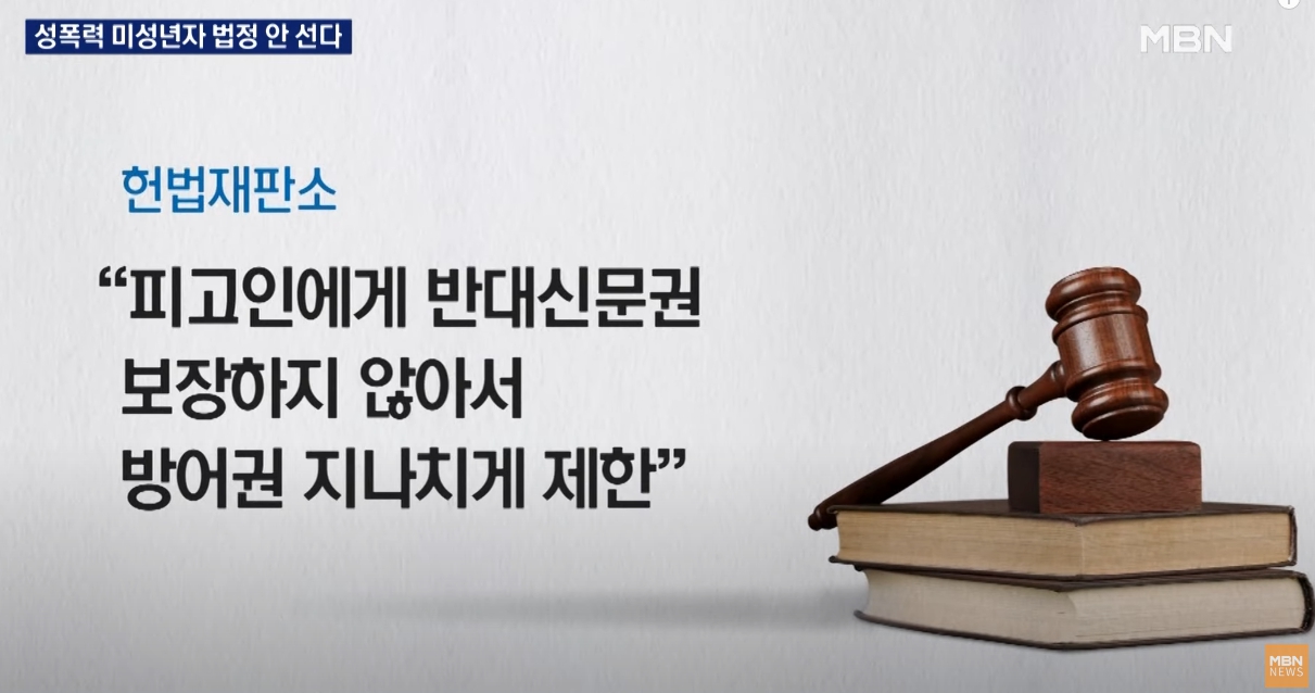 2021년 12월에, 미성년 성폭력 피해자가 법정에 나오지 않고 진술이 담긴 영상물만 법정 증거로 쓰는 건 위헌이라는 헌재의 결정이 나왔기 때문