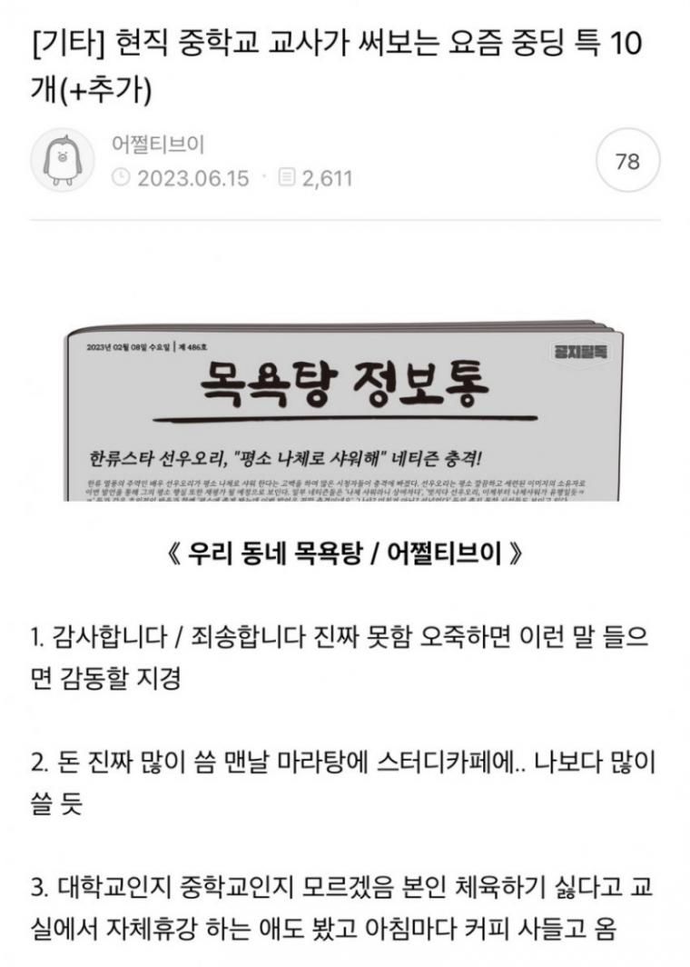 현직 중학교 교사가 써보는 요즘 중딩의 특징을 정리해보자.
