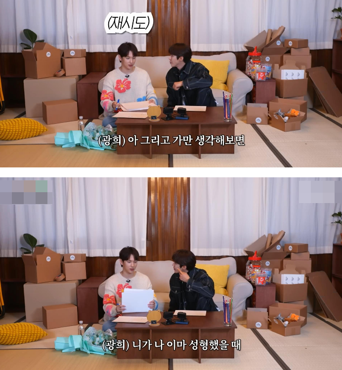 이 글은 광희와 시완이의 대화로 시작한다. 광희는 시완에게 자신의 이마 성형 때에 머리를 감아 준 것을 기억하는지 묻는다. PD는 이 대화를 듣고 웃는다. 광희는 머리를 감아 준 것을 어떻게 잊었는지 말한다. 광희는 이곳이 옛날에 자신들의 숙소처럼 구옥이었고, 문턱에 목을 받쳐서 머리를 감아 준 일을 말한다. 그리고 시완이가 화장실에서 호스를 가져와서 머리를 감아 준 것을 말한다. 광희는 머리 감아주고 샴푸를 하는 것이 시원하다고 말하고, 시완은 실리콘 때문에 아프다고 말한다. 그리고 모두 난리가 난다. AB All 88.