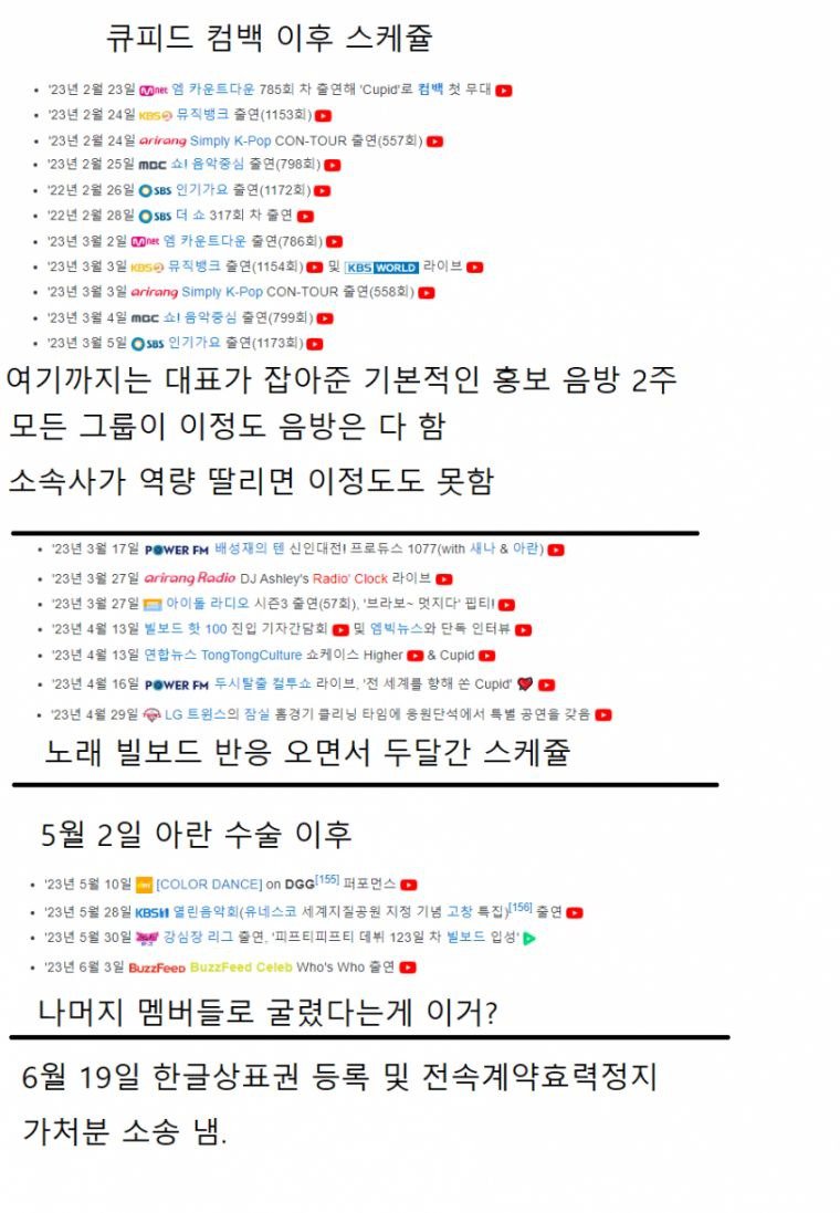 빡시게 굴렸다고 주장하는 피프티 활동내역