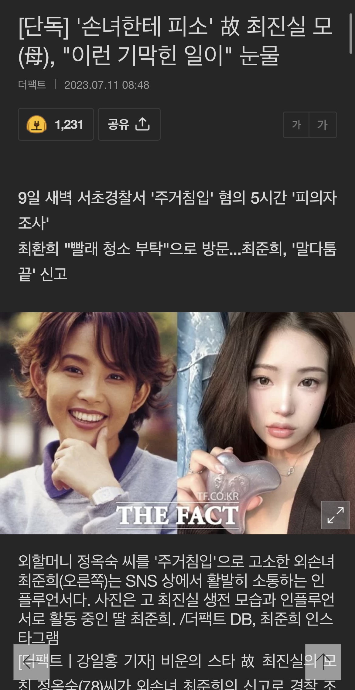 최진실 딸 최준희가 할머니를 주거침입으로 신고함;;