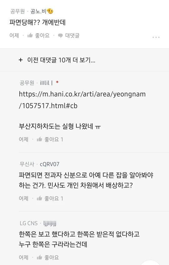 파면되면 전과자 신분으로 아예 다른 잡을 알아봐야 하는 건가. 민사도 개인 차원에서 배상하고?