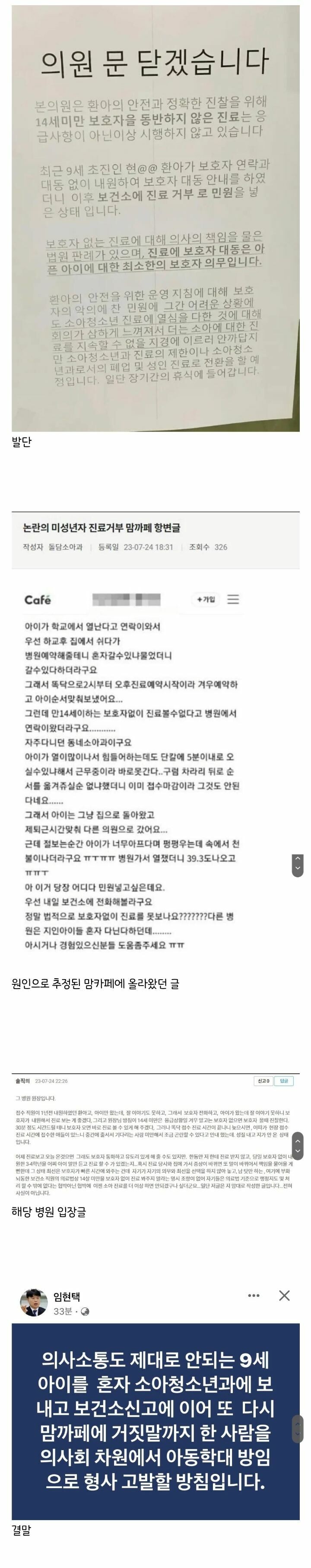 의무를 묻고 싶네요. 진료를 받기 위해 동네 소아과에 예약을 하였으나, 보호자 없이 병원에 가는 것이 가능한지 물어보니 가능하다고 답변을 받았습니다. 그래서 예약을 하고 아이를 보내주었는데, 만14세 이하의 아이는 보호자 없이 진료를 받을 수 없다고 병원에서 연락이 왔습니다. 동네 소아과인데도 불구하고 진료 접수를 마감해서 다른 의원으로 가야 했습니다. 아이는 진료를 받지 못하고 집으로 돌아왔는데, 갑작스러워서 천불을 이상하게도 받고 열도 많이 나왔습니다. 이 상황에서 어디에 민원을 넣어야 할지 어떻게 해결해야 할지 법적 의무를 알고 싶습니다. 내일 보건소에 전화를 해보려고 합니다.