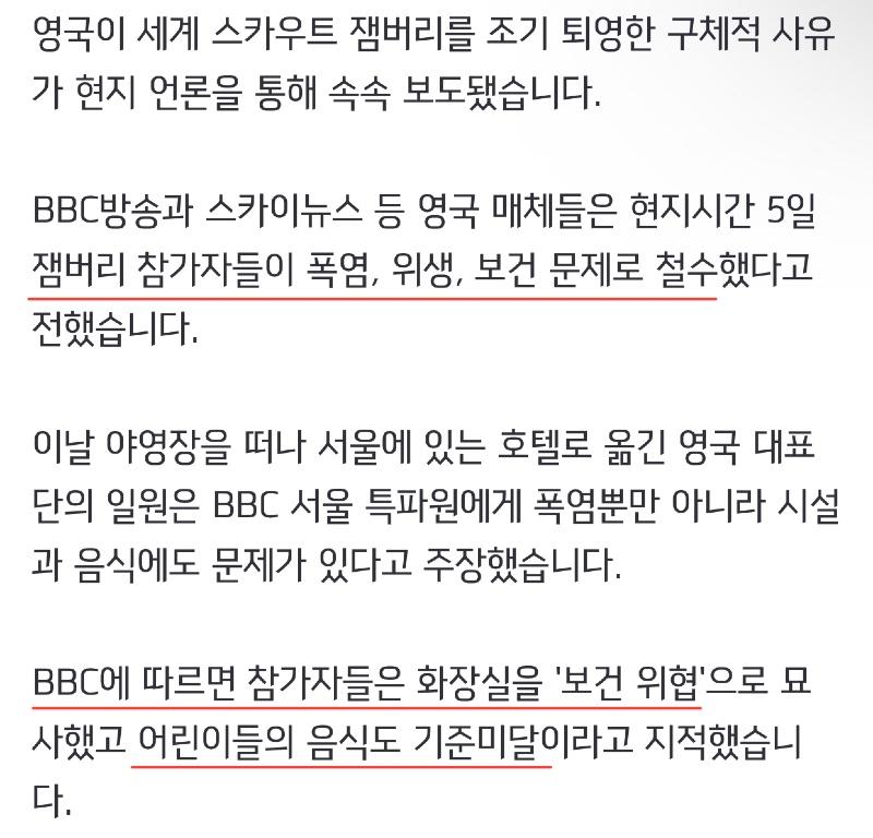 영국 잼버리 철수 이유, 단순히 폭염문제 아님