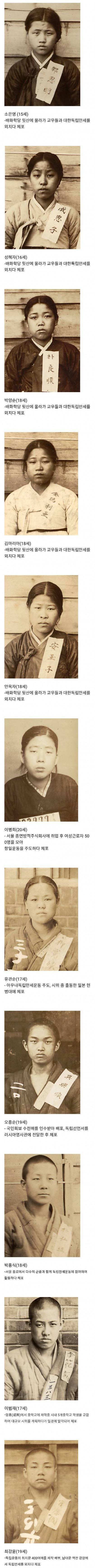 15세인 소은영은 배화학당 뒷산에서 교우들과 함께 대한독립만세를 외치다가 체포되었다. 18세인 김마리아와 성혜자도 같은 이유로 체포되었다. 또한 18세인 박양순과 18세인 유치옥자도 배화학당 뒷산에서 동일한 이유로 체포되었다. 18세인 이병희는 종연방적주식회사에서 일하고 있는데, 그곳에서 여성근로자 500명을 모아 항내 독립체포대에 주도하다가 체포되었다. 17세인 일운동을 순과 18세인 lla다포식도 또한 종로 하당 뒷산에서 동일한 이유로 체포되었다. 19세인 규오흥순은 국민회보를 인수받아 배포한 후, 독립선언서를 붙인 후 러시아 관에서 체포되었다. 17세인 이범재는 함흥에서 출신이며, 차마트와 함께 수많은 군중과 함께 독립만세운동에 참여하다가 체포되었다. 마지막으로 19세인 최강윤은 독립운동을 주도하고 있었는데, 일본 헌만세운동 서에서 일어난 시위 중에 일본 경찰에 의해 체포되었다. 이 외에도 모두 5개의 중학교 학생들도 독립운동을 계획하다가 체포되었다.