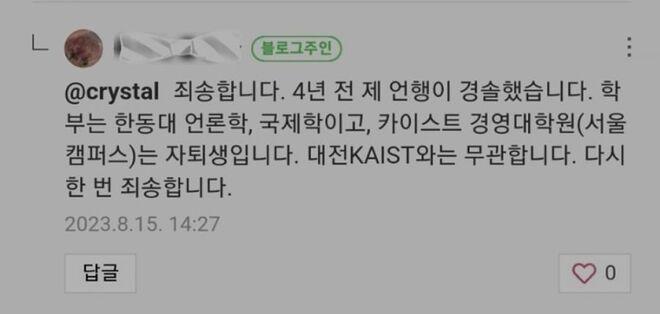 이에 대해 A씨는 학부모 B씨가 자신이 카이스트 졸업생이라고 주장하며 교사에게 갑질을 저질렀다고 주장하고 있다.
