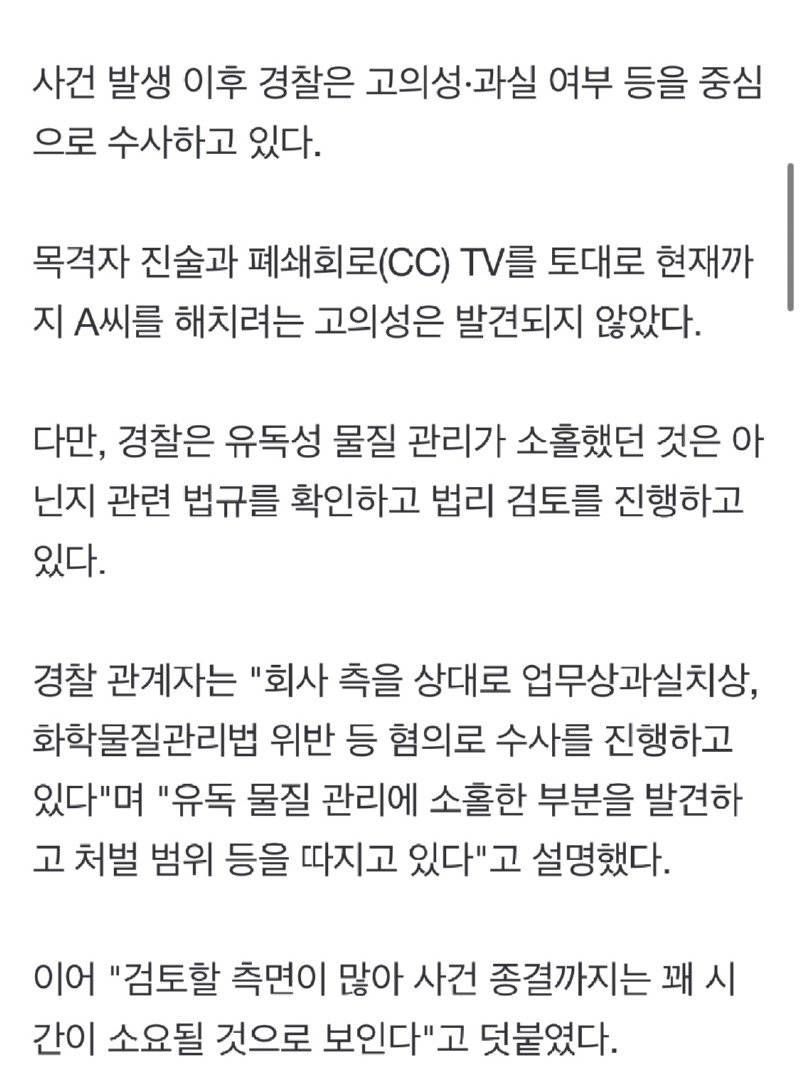 회사측이 용액에 불산이 있었다는 걸 사건발생 7시간쯤 지나 심정지가 와서야 알렸다고 합니다.