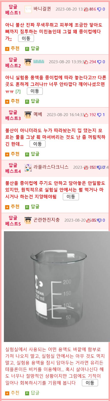 종이컵에 불산을 넣어두었는데