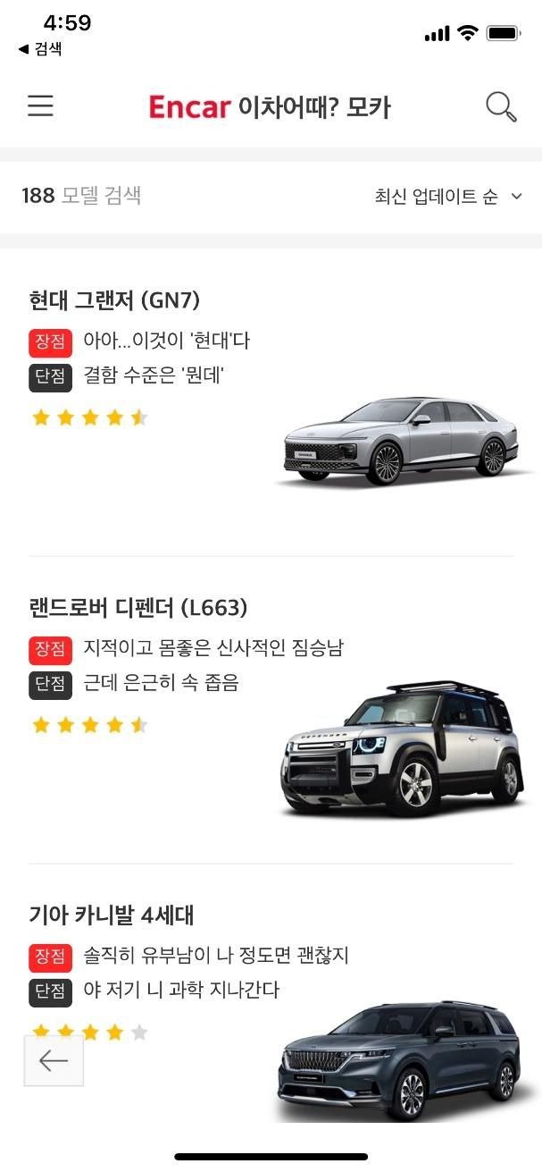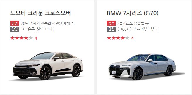 이 외에도 다양한 차량에 대한 의견들이 나와있었는데, 상대적으로 장점과 단점을 말하려면 단어들을 좀 더 활용해야 할 것 같다.