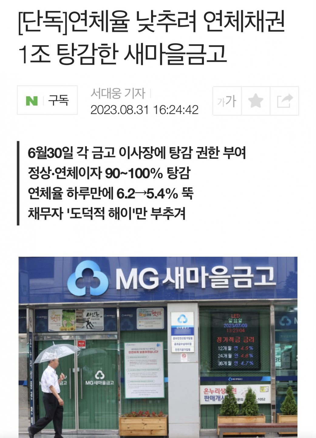 연체율 낮추려 연체채권 1조 탕감한 새마을금고