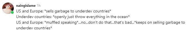 미국 및 유럽: ...안돼...그러지 마...그러면 안돼...(후진국에 계속 쓰레기를 팔며)