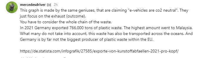그리고 독일은 EU 내에서 플라스틱 폐기물을 가장 많이 배출하는 국가는 아니라는 사실이다.