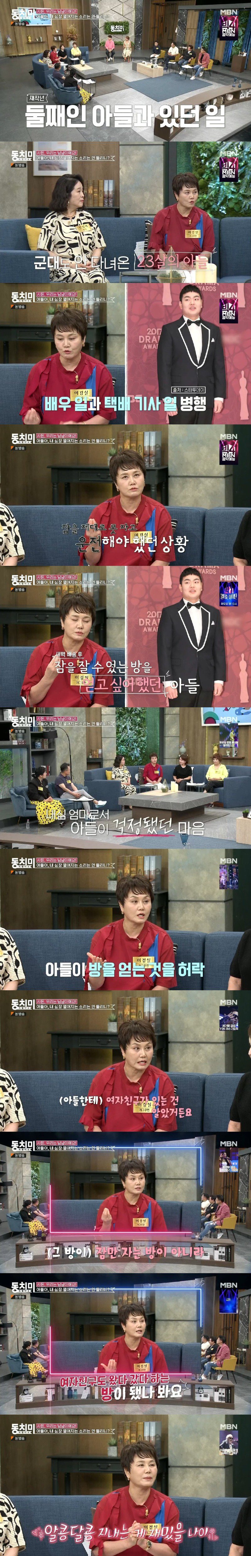 "동치미"라는 프로그램을 시청하면서 동치미 아들의 성장 과정과 어떤 사건들이 있었는지를 볼 수 있다. 동치미와 사는 우리는 남남의 관계이고, 동치미 아들은 우리의 발판이 되고 있다. 작년에 있었던 일을 동치미 작도를 통해 다시 보여주며, 동치미 아들은 군대에 가지 않고 23살에도 심장 소리를 듣지 않는다는 이야기를 한다. 엄마와 사돈이 동치미 아들에게 심장 소리를 묻는데, 동치미는 심장 소리를 듣지 못한다고 말한다. 마지막으로 이경실 배우가 제공한 인터뷰에서 동치미의 일과 택배 기사를 병행하는 이야기가 나온다.