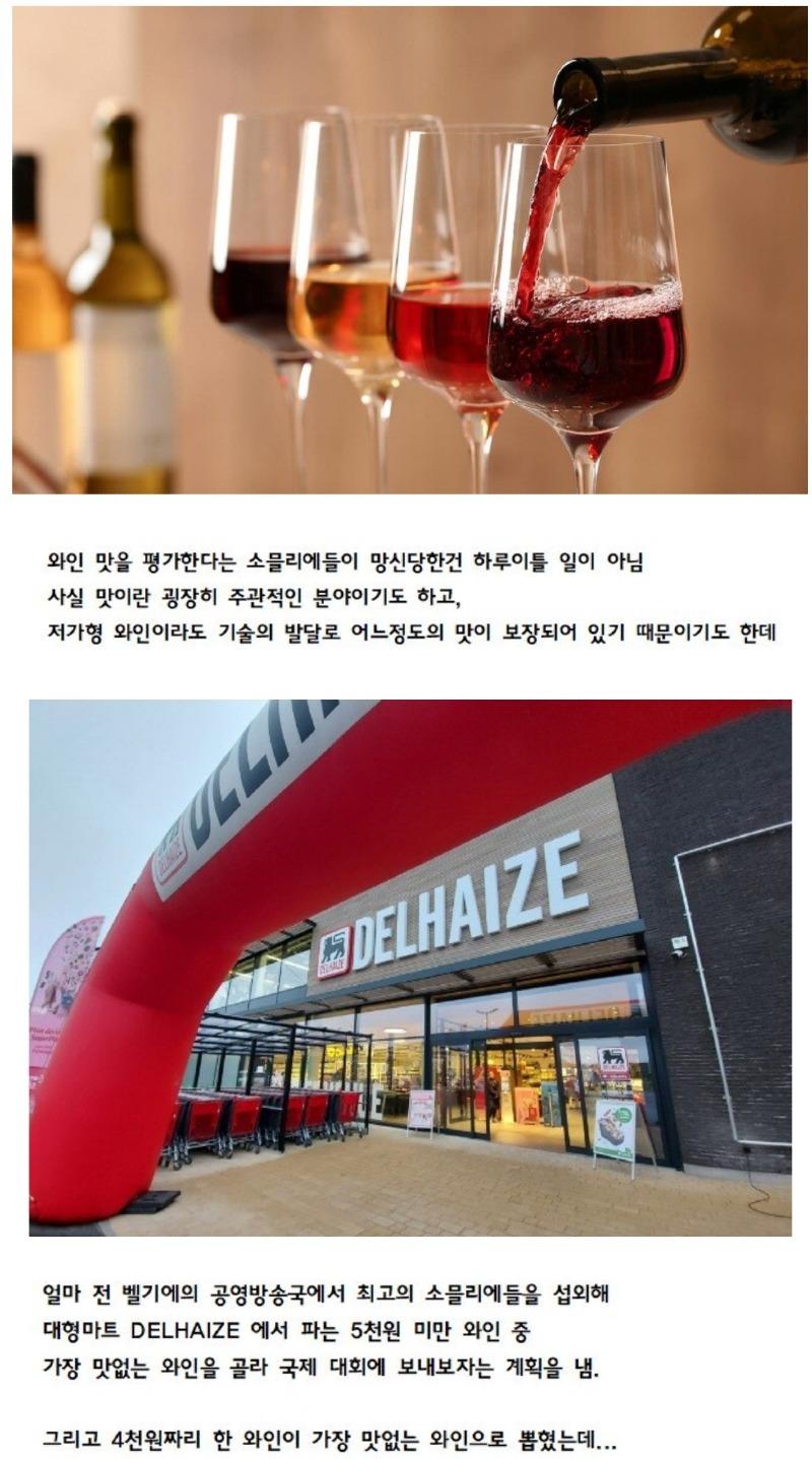 글을 정리해보면, 와인 맛을 평가하는 소믈리에들이 망신을 당한 것은 흔한 일이 아니라고 말한다. 왜냐하면 맛은 주관적인 요소이며 저가형 와인도 어느 정도의 맛을 보장할 수 있기 때문이다. 그러나 최근 벨기에의 공영방송국은 DELHAIZE에서 파는 5천원 미만의 와인 중 가장 맛없는 와인을 선택하여 국제 대회에 참가하자는 계획을 세웠다. 이 대회에서 4천원짜리 와인이 가장 맛없는 와인으로 선정되었다. 그러나 이 와인은 Gilbert & Gaillard International Challenge에서 88점이라는 좋은 평가를 받았고, 충분히 추천할만한 와인으로 분류되었다.