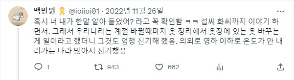 뚜렷한 이계절이 있기에 좋기도 하지만 불편함