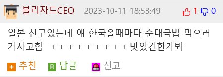 - 추천합니다. 순대국도 술 마신 다음날에 먹으면 좋을 것 같아요. 일본에는 순대국이라는 음식이 있는지 궁금해요. 순대국은 고기가 많이 들어있어요.