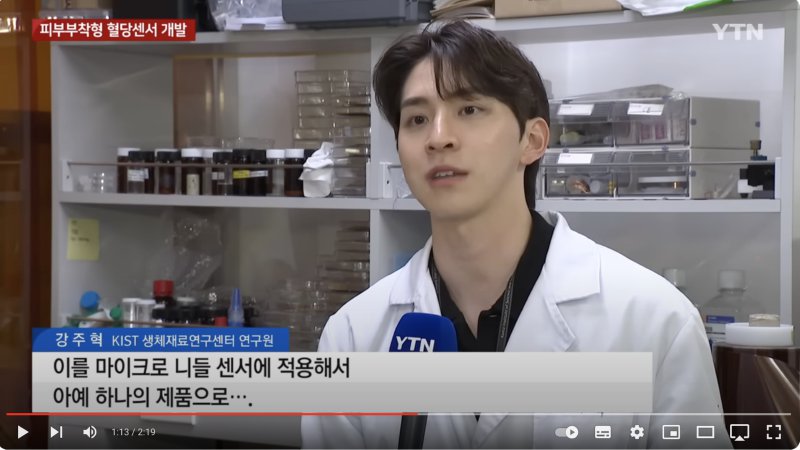 KIST 생체재료연구센터에서 연구원인 강주혁은 혈당 측정을 편리하고 정확하게 할 수 있는 피부부착형 혈당센서의 개발에 주력하고 있다. 이 혈당센서는 마이크로 니들 센서에 적용되어 하나의 제품으로 제작되는 것이 특징이다. 현재 개발 작업이 진행 중이며, 이 혈당센서가 실제 사용 가능한 수준에 도달하면 혈당 측정의 편의성과 정확성이 크게 향상될 것이다. YTN 뉴스에서도 이 혈당센서 개발 관련 뉴스를 다루고 있다.