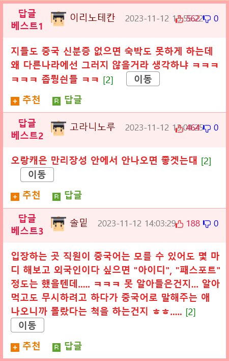 그렇다고 중국 신분증을 요구했지만, 없었기 때문에 숙박도 못할 수밖에 없었다. 짜증나서 왜 다른 나라에서는 그러지 않을까 생각했다. 하지만 이동이라는 답글을 보면서 사진이 안 되는 이유를 알 수 있었다. 신분증이 없는 방법이 없어서 여러분들도 못 들어가는 거라고 했다.