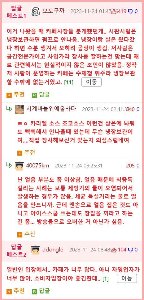 전문가가 말하는 망하는 카페의 문제점.jpg 밝은횃불 쪽지보내기자기소개아이디로 검색전체게시물 12-01 6,493 회 0 건 열심히 일하는 아이가 있습니다. 그는 동네에 있는 맛집에 손을 들이고 싶어 합니다. 그러나 폭력적인 이유로 손대지 못합니다. 대 목록 이메일 주소는 공개되지 않습니다. 댓글 * 이름 * 비밀번호 * 비밀글 사용 제목 글쓴이 조회 날짜 제발 의사 만나지 말라는 블라인 1 지니까꿍 쪽지보내기자기소개아이디로 검색전체게시물 5,862 1 23-12-13 지니까꿍 쪽지보내기자기소개아이디로 검색전체게시물 5,862 23-12-13 의외로 환경보호를 하던 물질.jpg 재미난도시락 쪽지보내기자기소개아이디로 검색전체게시물 6,104 0 23-12-12 재미난도시락 쪽지보내기자기소개아이디로 검색전체게시물 6,104 23-12-12 대한민국 국립묘지 몽비쥬 쪽지보내기자기소개아이디로 검색전체게시물 5,877 0 23-12-12 몽비쥬 쪽지보내기자기소개아이디로 검색전체게시물 5,877 23-12-12 태연: 화장품은 그냥 팍팍 쓰세요 동태탕 쪽지보내기자기소개아이디로 검색전체게시물 5,737 0 23-12-12 동태탕 쪽지보내기자기소개아이디로 검색전체게시물 5,737 23-12-12 요즘 유행이라는 중국산 치약 근황 몽비쥬 쪽지보내기자기소개아이디로 검색전체게시물 6,212 0 23-12-11 몽비쥬 쪽지보내기자기소개아이디로 검색전체게시물 6,212 23-12-11 기업의 철수에 항의하는 지역민들 1 아시가루 쪽지보내기자기소개아이디로 검색전체게시물 6,355 1 23-12-11 아시가루 쪽지보내기자기소개아이디로 검색전체게시물 6,355 23-12-11 개그맨 김동현을 타격가로 오해했던 UFC 선수 ㄷㄷ...GIF 재미난도시락 쪽지보내기자기소개아이디로 검색전체게시물 5,998 0 23-12-11 재미난도시락 쪽지보내기자기소개아이디로 검색전체게시물 5,998 23-12-11 돈 없는데 세금 2억이 나온 20대.jpg 동태탕 쪽지보내기자기소개아이디로 검색전체게시물 6,140 0 23-12-10 동태탕 쪽지보내기자기소개아이디로 검색전체게시물 6,140 23-12-10 코스트코 근황 세계는지금 쪽지보내기자기소개아이디로 검색전체게시물 6,736 0 23-12-10 세계는지금 쪽지보내기자기소개아이디로 검색전체게시물 6,736 23-12-10 여자 꼬시는게 세상 쉽다고 하는여자 2 얼음사이다 쪽지보내기자기소개아이디로 검색전체게시물 7,347 2 23-12-09 얼음사이다 쪽지보내기자기소개아이디로 검색전체게시물 7,347 23-12-09 엽기 살인마 유영철의 아내 근황 세계는지금 쪽지보내기자기소개아이디로 검색전체게시물 8,277 0 23-12-08 세계는지금 쪽지보내기자기소개아이디로 검색전체게시물 8,277 23-12-08 넥슨직원이 쓴 경향 페미기사 반박문ㄷㄷㄷ 지니까꿍 쪽지보내기자기소개아이디로 검색전체게시물 7,536 0 23-12-07 지니까꿍 쪽지보내기자기소개아이디로 검색전체게시물 7,536 23-12-07 지하철에서 고백받은 유부녀.jpg 아시가루 쪽지보내기자기소개아이디로 검색전체게시물 7,782 0 23-12-07 아시가루 쪽지보내기자기소개아이디로 검색전체게시물 7,782 23-12-07 설운도 급발진 사고 인터뷰 도레미 쪽지보내기자기소개아이디로 검색전체게시물 7,624 0 23-12-06 도레미 쪽지보내기자기소개아이디로 검색전체게시물 7,624 23-12-06 일본인이 말하는 한국인의 삶 재미난도시락 쪽지보내기자기소개아이디로 검색전체게시물 7,911 0 23-12-06 재미난도시락 쪽지보내기자기소개아이디로 검색전체게시물 7,911 23-12-06 중국의 진실, 굶어 죽는 사람들 1 도레미 쪽지보내기자기소개아이디로 검색전체게시물 7,203 1 23-12-05 도레미 쪽지보내기자기소개아이디로 검색전체게시물 7,203 23-12-05 진돗개는 경찰견으로 부적합 합니다. 아시가루 쪽지보내기자기소개아이디로 검색전체게시물 7,054 0 23-12-05 아시가루 쪽지보내기자기소개아이디로 검색전체게시물 7,054 23-12-05 양반과 노비가 한이불 덮고 잤던 조선 시대의 주막.jpg 1 옆집총각 쪽지보내기자기소개아이디로 검색전체게시물 6,385 1 23-12-05 옆집총각 쪽지보내기자기소개아이디로 검색전체게시물 6,385 23-12-05 전설로 회자되는 패션고자 소개팅남 도레미 쪽지보내기자기소개아이디로 검색전체게시물 7,497 0 23-12-04 도레미 쪽지보내기자기소개아이디로 검색전체게시물 7,497 23-12-04 독일에서는 미대 불합격자들이 이의제기를 할수 있다 지니까꿍 쪽지보내기자기소개아이디로 검색전체게시물 7,053 0 23-12-03 지니까꿍 쪽지보내기자기소개아이디로 검색전체게시물 7,053 23-12-03 허구언날 싸움 난다는 여자 교도소 근황 달콤별 쪽지보내기자기소개아이디로 검색전체게시물 6,800 0 23-12-03 달콤별 쪽지보내기자기소개아이디로 검색전체게시물 6,800 23-12-03 웬만한 집마다 다 있는데 사용 안하고 있는 장치.jpg 지니까꿍 쪽지보내기자기소개아이디로 검색전체게시물 7,043 0 23-12-03 지니까꿍 쪽지보내기자기소개아이디로 검색전체게시물 7,043 23-12-03 북한과학자의 세뇌가 깨졌던 과정 옆집총각 쪽지보내기자기소개아이디로 검색전체게시물 6,631 0 23-12-03 옆집총각 쪽지보내기자기소개아이디로 검색전체게시물 6,631 23-12-03 84세 할아버지의 당뇨 이겨내는 꿀팁 모카크림 쪽지보내기자기소개아이디로 검색전체게시물 6,501 0 23-12-02 모카크림 쪽지보내기자기소개아이디로 검색전체게시물 6