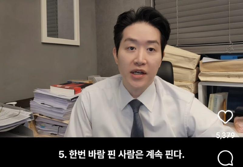 - 한번 바람을 피는 사람은 계속 바람을 피게 됩니다.