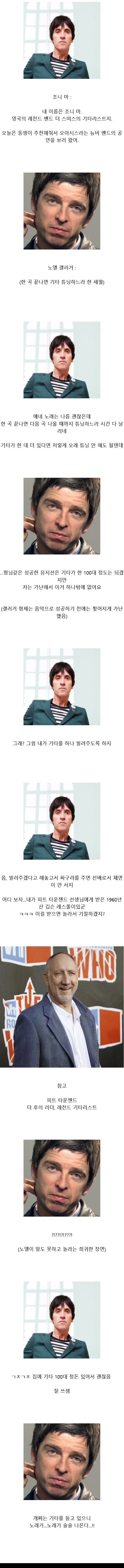 - 오아시스 전국 투어 중에 노엘이 관객과 싸워 관객 머리를 휘둘렀다는 이야기를 들었다.