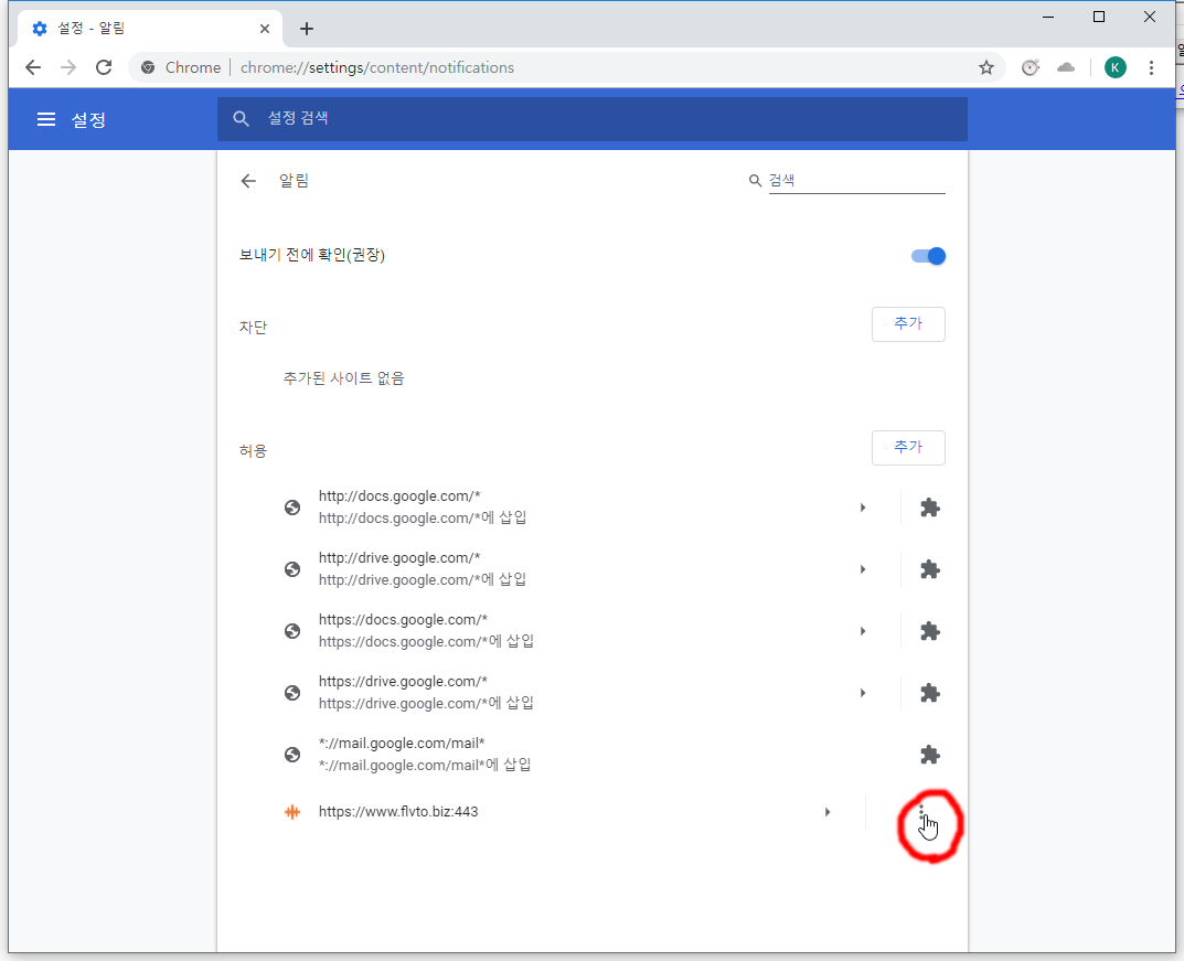 크롬 알림창 해제하기 팁앤테크 쪽지보내기메일보내기자기소개아이디로 검색전체게시물 05-28 2,771 회 0 건 크롬 알림창을 통해 광고를 출력하는 것을 중지하는 방법입니다. 크롬 실행 주소창에 chrome://settings/content/notifications 입력 허용쪽에서 중지할 주소 우측에 : 를 클릭해서 삭제 목록 로그인 후 댓글내용을 입력해주세요 댓글 * 전체 길호넷 윈도우 리눅스 워드프레스 그누보드 파이썬 델파이 개발팁 기타 제목 글쓴이 조회 날짜 윈도우 VS Code 설치방법 팁앤테크 쪽지보내기메일보내기자기소개아이디로 검색전체게시물 2,914 0 19-06-30 팁앤테크 쪽지보내기메일보내기자기소개아이디로 검색전체게시물 2,914 19-06-30 시크릿SNI 화이트 리스트 등록하기 2 오길호 쪽지보내기메일보내기자기소개아이디로 검색전체게시물 16,912 2 19-06-29 오길호 쪽지보내기메일보내기자기소개아이디로 검색전체게시물 16,912 19-06-29 기타 구글 google 영어 사이트로 접속하기 팁앤테크 쪽지보내기메일보내기자기소개아이디로 검색전체게시물 4,148 0 19-06-20 팁앤테크 쪽지보내기메일보내기자기소개아이디로 검색전체게시물 4,148 19-06-20 개발팁 지정 폴더 내 PHP 파일 최종 수정일 확인하기 오길호 쪽지보내기메일보내기자기소개아이디로 검색전체게시물 2,801 0 19-06-20 오길호 쪽지보내기메일보내기자기소개아이디로 검색전체게시물 2,801 19-06-20 기타 안드로이드에서 구글 검색기록 끄기 팁앤테크 쪽지보내기메일보내기자기소개아이디로 검색전체게시물 2,699 0 19-06-14 팁앤테크 쪽지보내기메일보내기자기소개아이디로 검색전체게시물 2,699 19-06-14 윈도우 레지스트리 변경값 추적하는 프로그램 팁앤테크 쪽지보내기메일보내기자기소개아이디로 검색전체게시물 7,475 0 19-06-14 팁앤테크 쪽지보내기메일보내기자기소개아이디로 검색전체게시물 7,475 19-06-14 리눅스 간단한 보안 체크하기 팁앤테크 쪽지보내기메일보내기자기소개아이디로 검색전체게시물 2,508 0 19-06-05 팁앤테크 쪽지보내기메일보내기자기소개아이디로 검색전체게시물 2,508 19-06-05 ⭐ 윈도우 크롬 알림창 해제하기 팁앤테크 쪽지보내기메일보내기자기소개아이디로 검색전체게시물 2,772 0 19-05-28 팁앤테크 쪽지보내기메일보내기자기소개아이디로 검색전체게시물 2,772 19-05-28 그누보드 훅을 통한 글쓰기, 댓글 알림 오길호 쪽지보내기메일보내기자기소개아이디로 검색전체게시물 72,227 0 19-05-26 오길호 쪽지보내기메일보내기자기소개아이디로 검색전체게시물 72,227 19-05-26 개발팁 CDN 간단히 구축하기 오길호 쪽지보내기메일보내기자기소개아이디로 검색전체게시물 3,498 0 19-05-21 오길호 쪽지보내기메일보내기자기소개아이디로 검색전체게시물 3,498 19-05-21 그누보드 Syntax Highlight 적용하기 오길호 쪽지보내기메일보내기자기소개아이디로 검색전체게시물 76,714 0 19-05-19 오길호 쪽지보내기메일보내기자기소개아이디로 검색전체게시물 76,714 19-05-19 워드프레스 단어 수정하기 오길호 쪽지보내기메일보내기자기소개아이디로 검색전체게시물 2,985 0 19-05-19 오길호 쪽지보내기메일보내기자기소개아이디로 검색전체게시물 2,985 19-05-19 윈도우 Go 언어 설치하기 팁앤테크 쪽지보내기메일보내기자기소개아이디로 검색전체게시물 2,511 0 19-05-16 팁앤테크 쪽지보내기메일보내기자기소개아이디로 검색전체게시물 2,511 19-05-16 WinDivert1.4 서비스 종료 오길호 쪽지보내기메일보내기자기소개아이디로 검색전체게시물 11,899 0 19-02-24 오길호 쪽지보내기메일보내기자기소개아이디로 검색전체게시물 11,899 19-02-24 ChangeDNS 오길호 쪽지보내기메일보내기자기소개아이디로 검색전체게시물 14,134 0 18-10-22 오길호 쪽지보내기메일보내기자기소개아이디로 검색전체게시물 14,134 18-10-22 [SimpleChat] HTML 태그 처리 방지 패치 코리아 쪽지보내기메일보내기자기소개아이디로 검색전체게시물 17,494 0 13-09-16 코리아 쪽지보내기메일보내기자기소개아이디로 검색전체게시물 17,494 13-09-16 워프 무료 SSL cshop 쪽지보내기메일보내기홈페이지자기소개아이디로 검색전체게시물 16,895 0 12-09-10 cshop 쪽지보내기메일보내기홈페이지자기소개아이디로 검색전체게시물 16,895 12-09-10 윈도우 용 git cshop 쪽지보내기메일보내기홈페이지자기소개아이디로 검색전체게시물 16,893 0 12-08-31 cshop 쪽지보내기메일보내기홈페이지자기소개아이디로 검색전체게시물 16,893 12-08-31 윈도우 8 4만원에 cshop 쪽지보내기메일보내기홈페이지자기소개아이디로 검색전체게시물 18,294 0 12-07-04 cshop 쪽지보내기메일보내기홈페이지자기소개아이디로 검색전체게시물 18,294 12-07-04 [광고아님] 비용절감 + 기능 + 편리함 = 클라우드 서버 cshop 쪽지보내기메일보내기홈페이지자기소개아이디로 검색전체게시물 16,532 0 12-07-02 cshop 쪽지보내기메일보내기홈페이지자기소개아이디로 검색전체게시물 16,532 12-07-02 크로스 브라우져 문제 때문에 고생하시는 분들께 드리는 팁 cshop 쪽지보내기메일보내기홈페이지자기소개아이디로 검색전체게시물 15,556 0 12-06-29 cshop 쪽지보내기메일보내기홈페이지자기소개아이디로 검색전체게시물 15,556 12-06-29 사이트/하위폴더 비밀번호 걸어주는 예제 