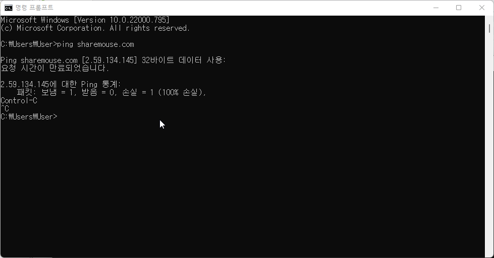 - sharemouse.com 가 정상적으로 접속되는 것을 확인 할 수 있습니다.