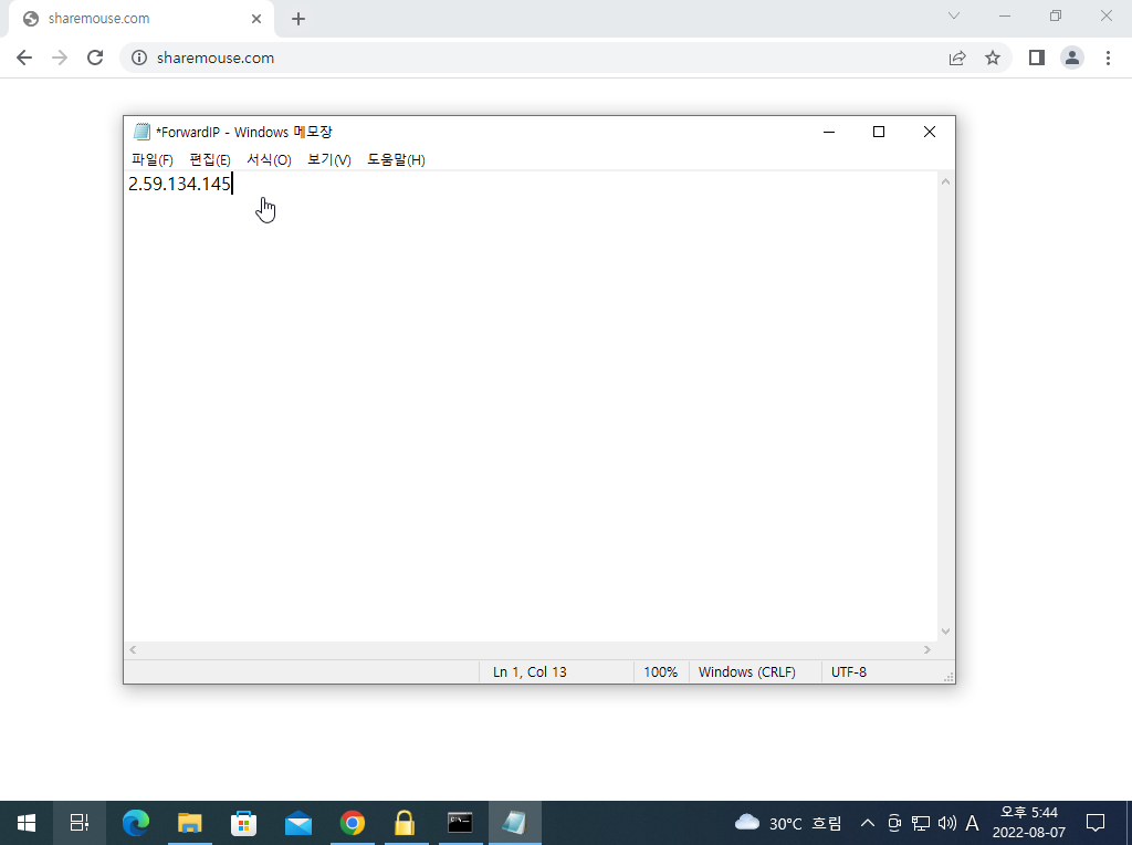 - 메모장이 나오면 (2) 에서 찾아낸 아이피(2.59.134.145) 를 입력합니다.