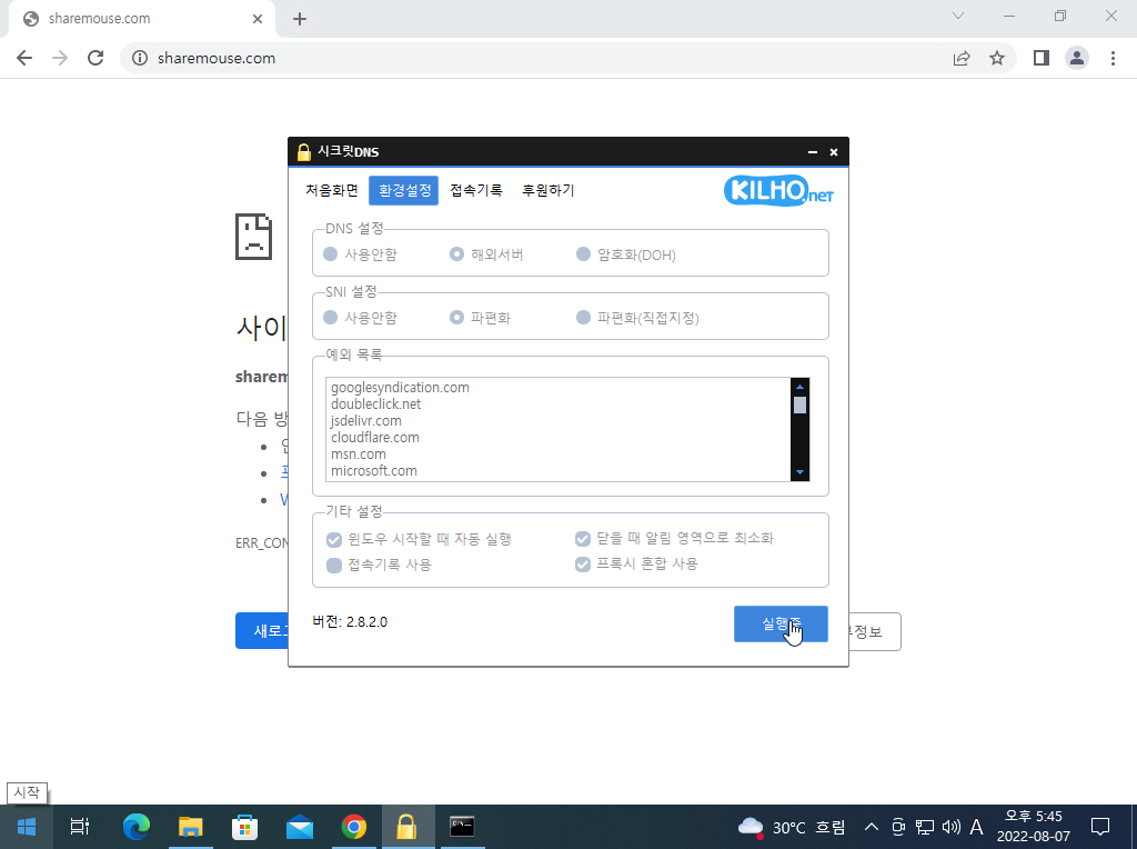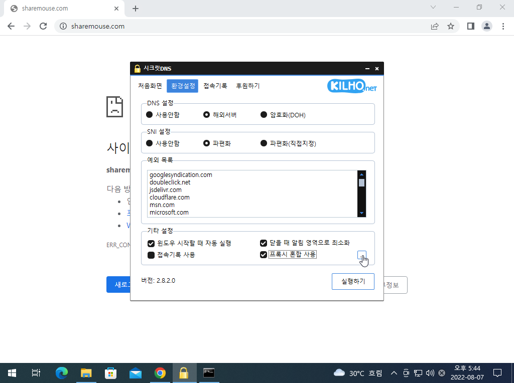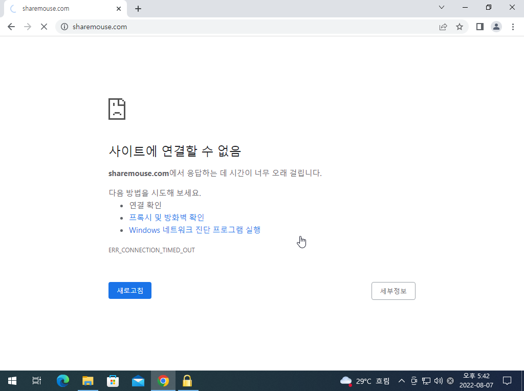 - 첨부한 이미지와 같이 sharemouse.com 가 접속되지 않습니다.
